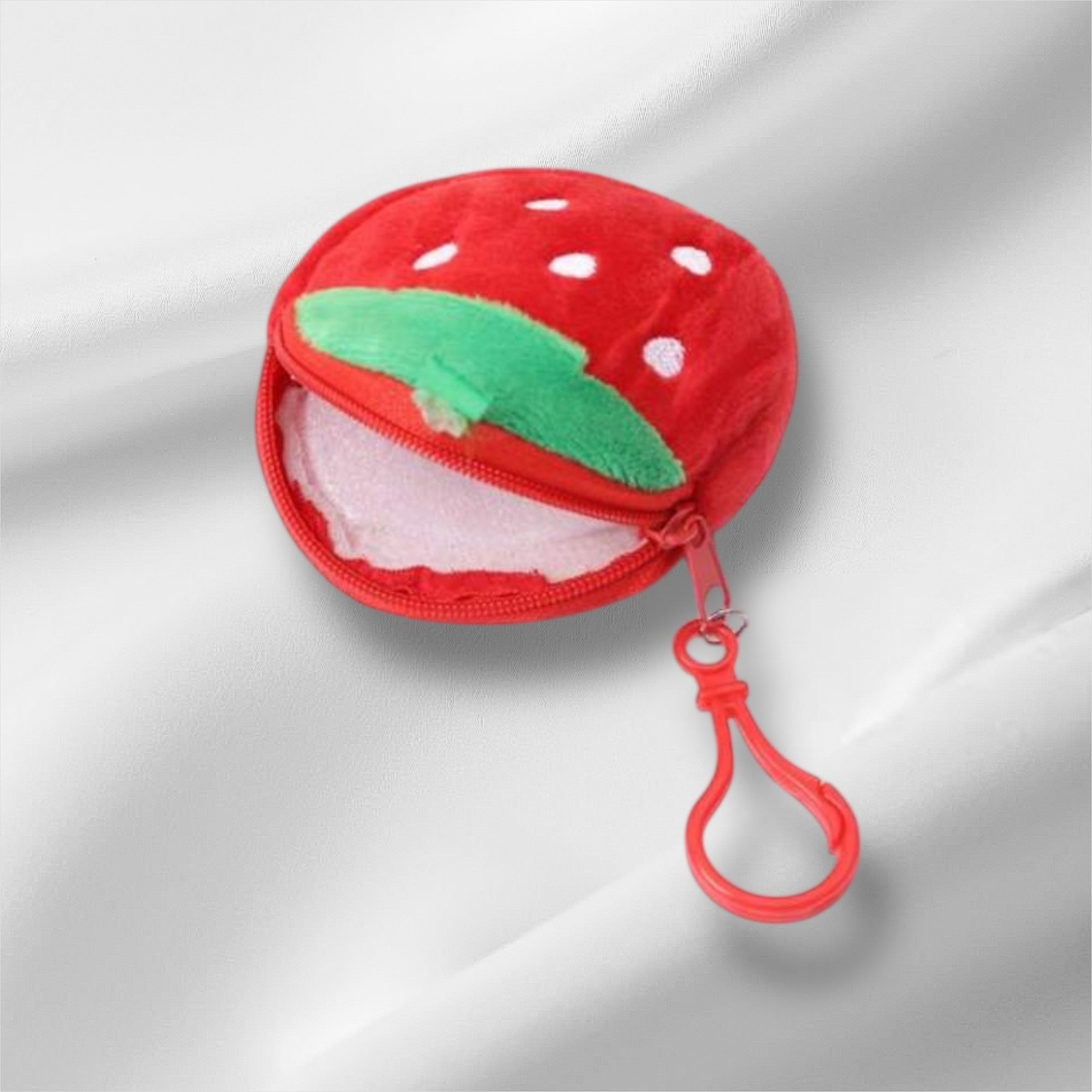 The Berry Charm coin pouch is a sweet little essential inspired by the joy of strawberries in bloom. Made from plush fabric with soft embroidery and a playful green leaf top, it brings a pop of color and cheer wherever you go.