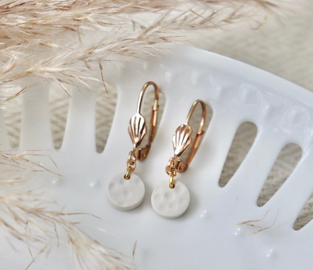 Handmade with care from lightweight Sculpey polymer clay, these earrings combine comfort with artistic flair. Each piece is finished with decorative stainless steel connectors that add an elegant touch, making them perfect for elevating any outfit with a unique, handcrafted style.