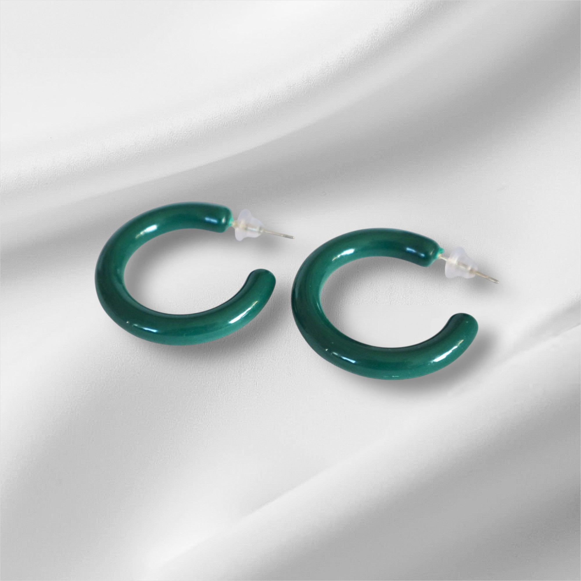 Bold yet elegant, these handmade earrings feature rich dark green acrylic for a sleek, modern look. The deep color offers a timeless appeal, making them a versatile addition to any jewelry collection.