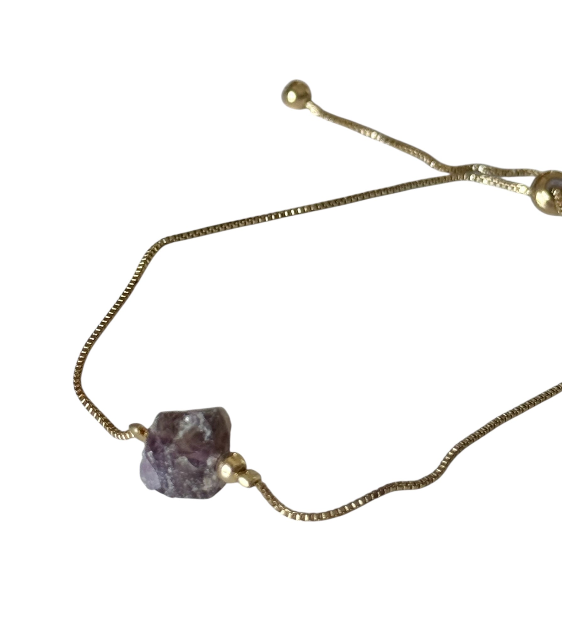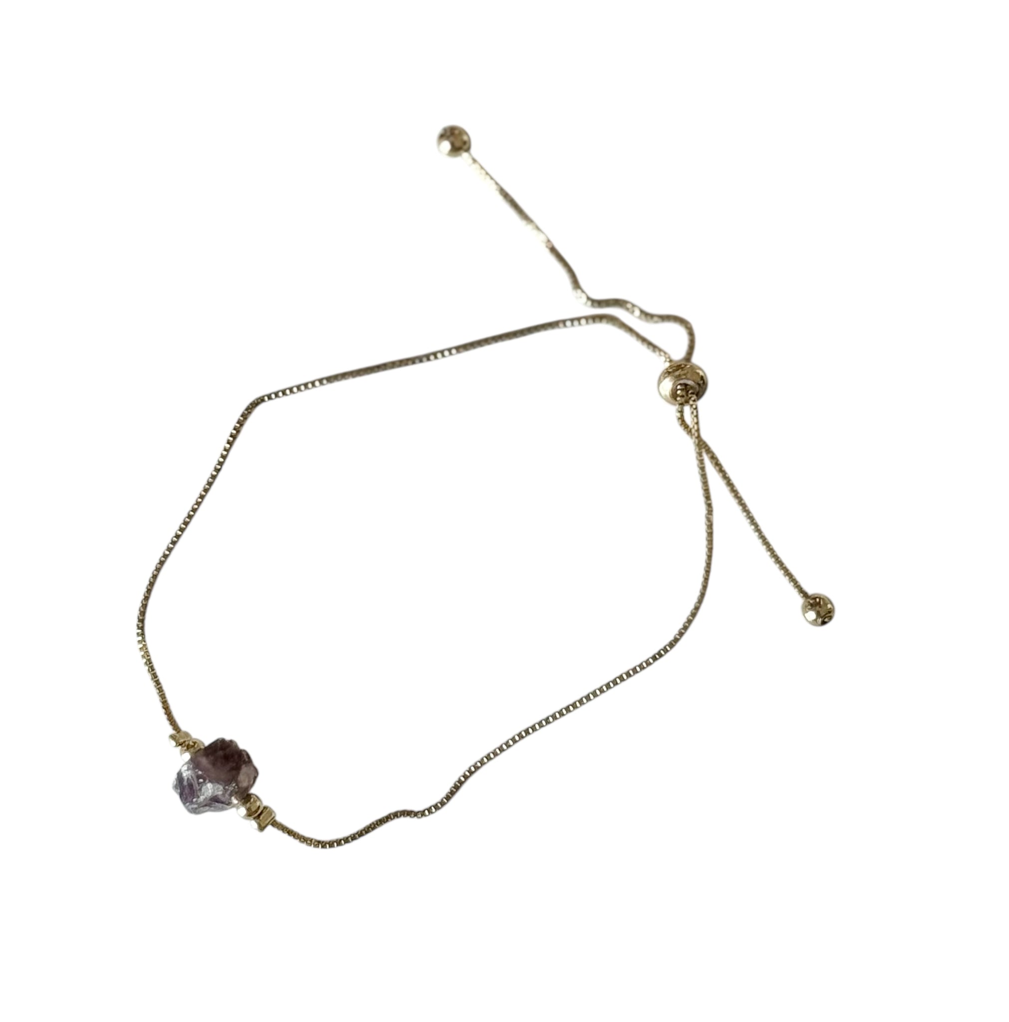 Elegant adjustable fashion bracelet featuring a natural stone centrepiece on a sleek gold-tone slider chain. Lightweight, minimalist, and effortlessly stylish, perfect for everyday wear or layering.