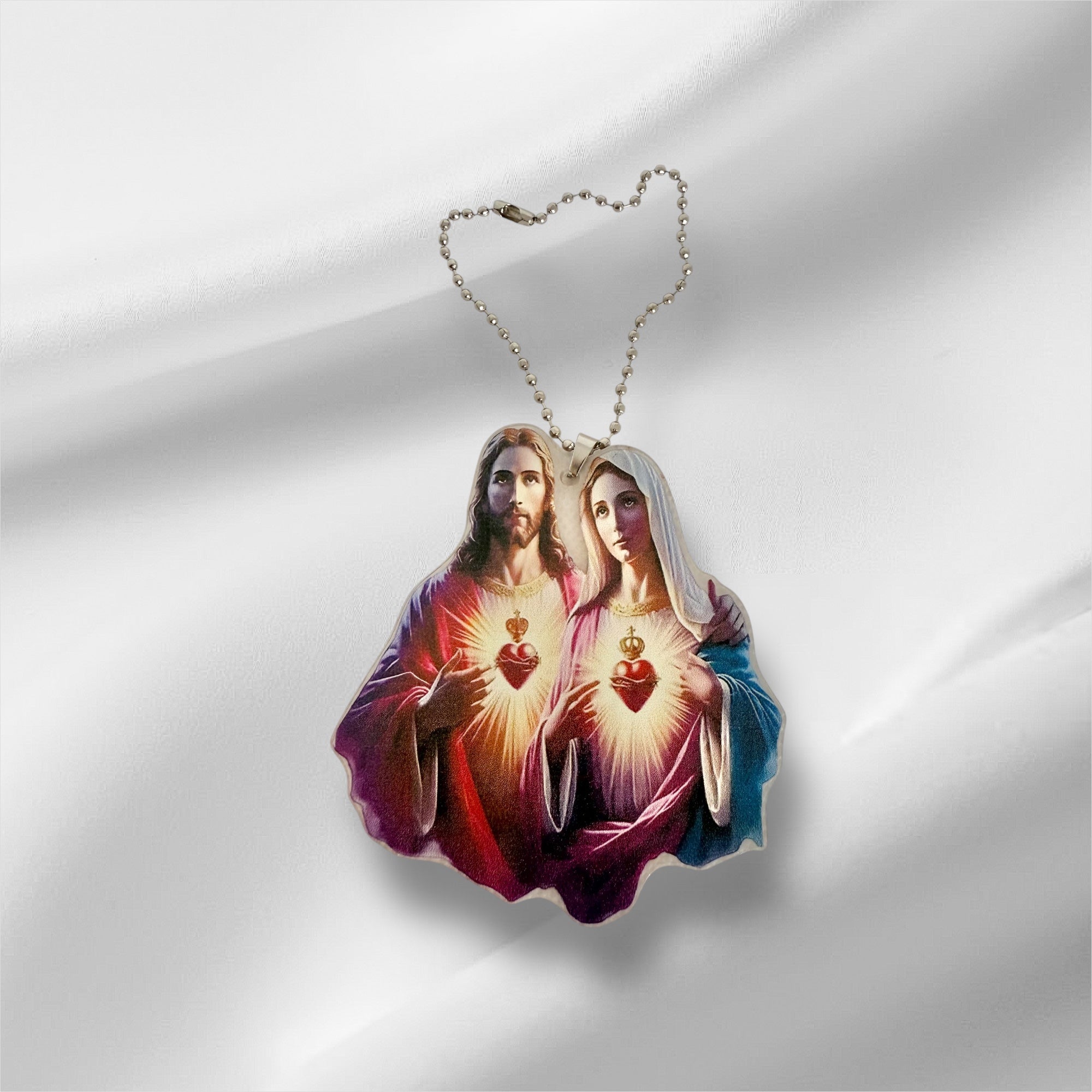 Carry faith wherever you go with the Sacred Hearts Devotion Pendant. A beautifully detailed image of the Sacred Heart of Jesus and the Immaculate Heart of Mary, radiating love and divine protection.
