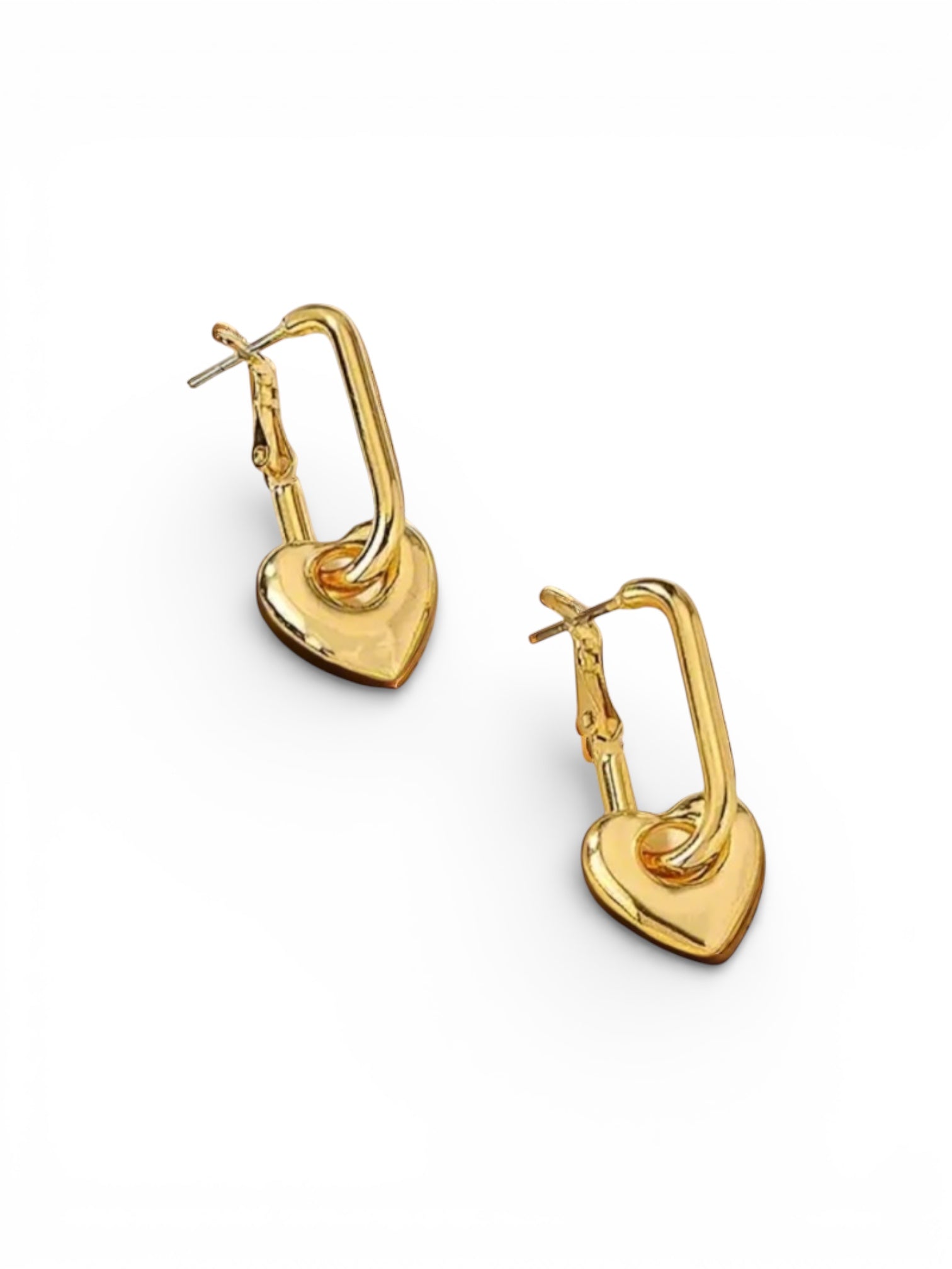 Bold yet romantic, the Golden Heartlock Drop Earrings are designed to make a statement. Featuring a polished gold-plated heart charm suspended from a sleek elongated drop, this pair blends modern edge with timeless love symbolism.