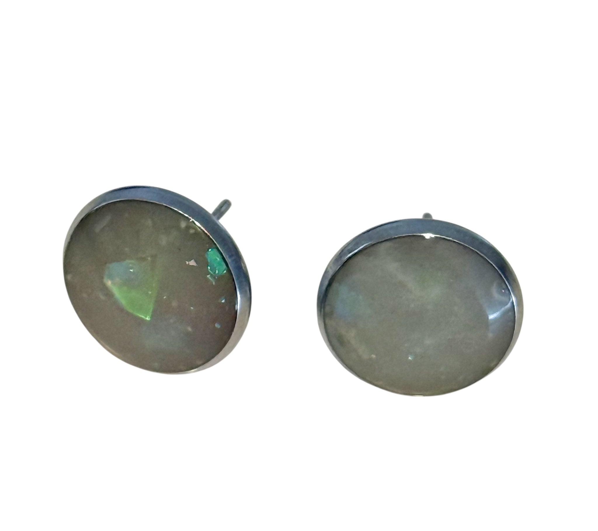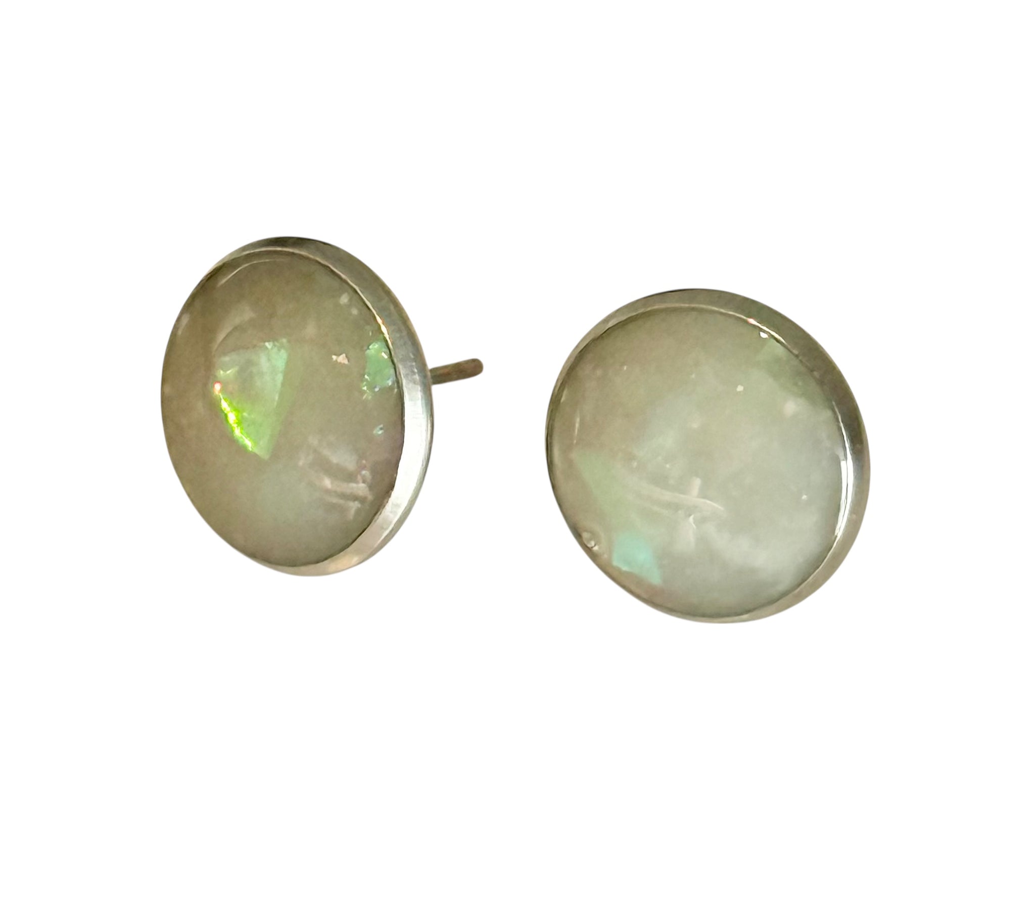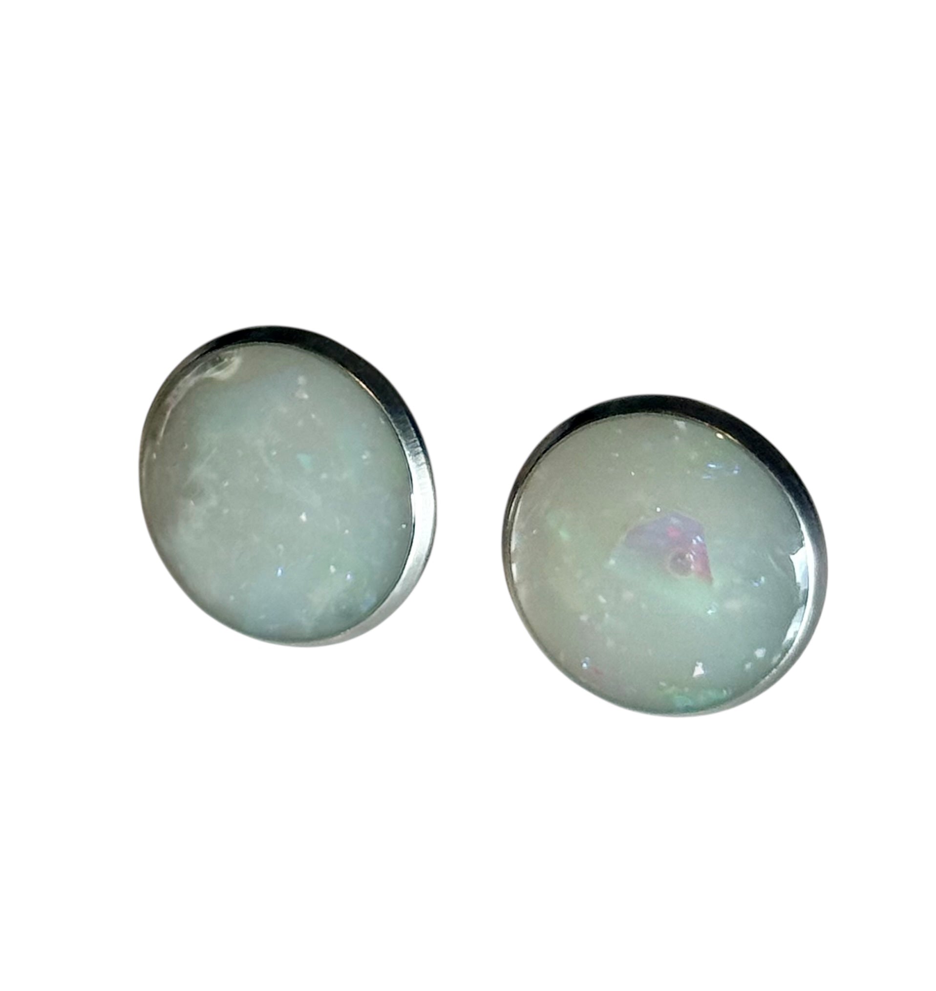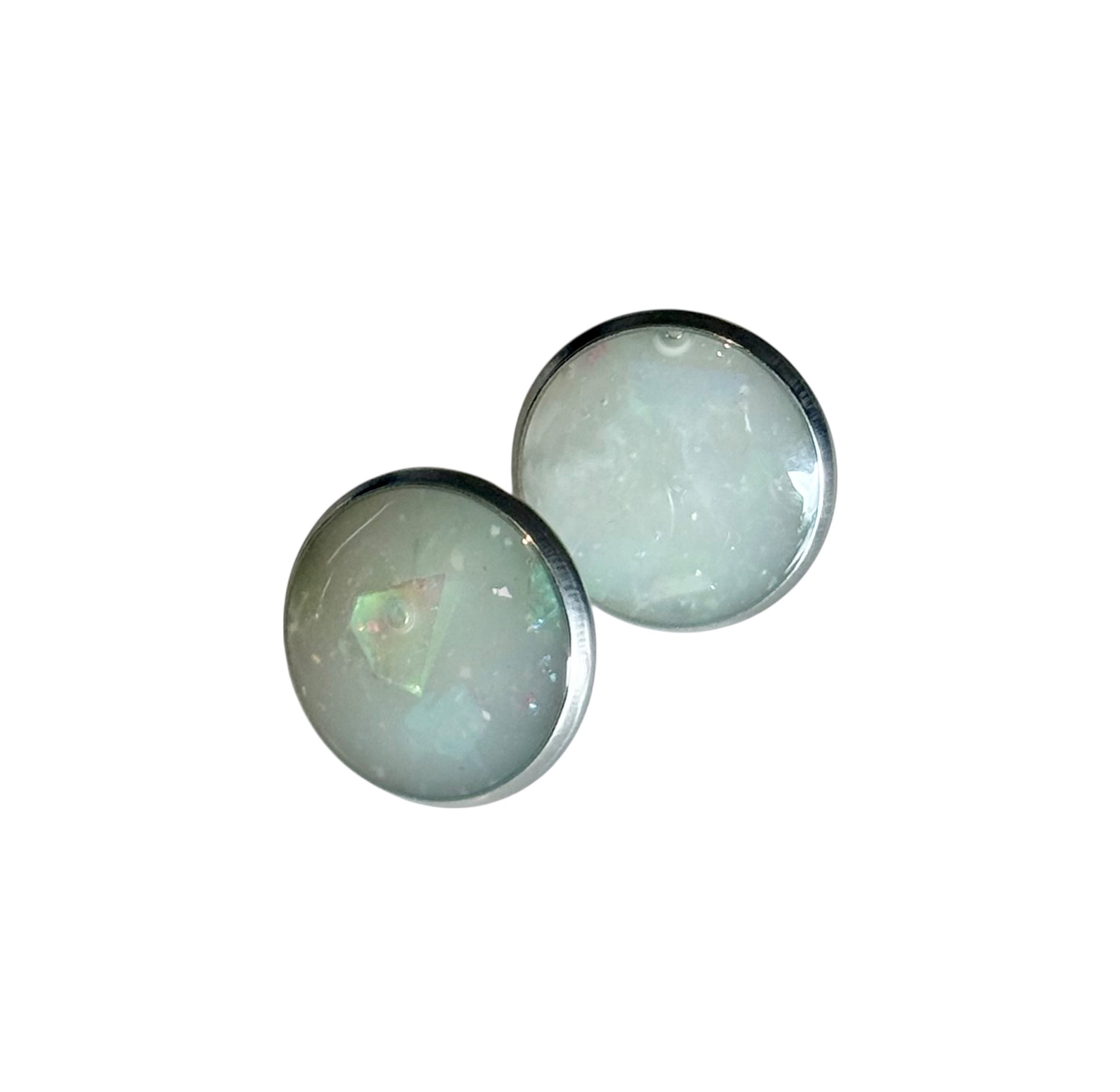 Add a soft shimmer to your everyday look with these handmade resin stud earrings, beautifully decorated with iridescent foil and sealed in glossy epoxy resin for a smooth, glass-like finish.