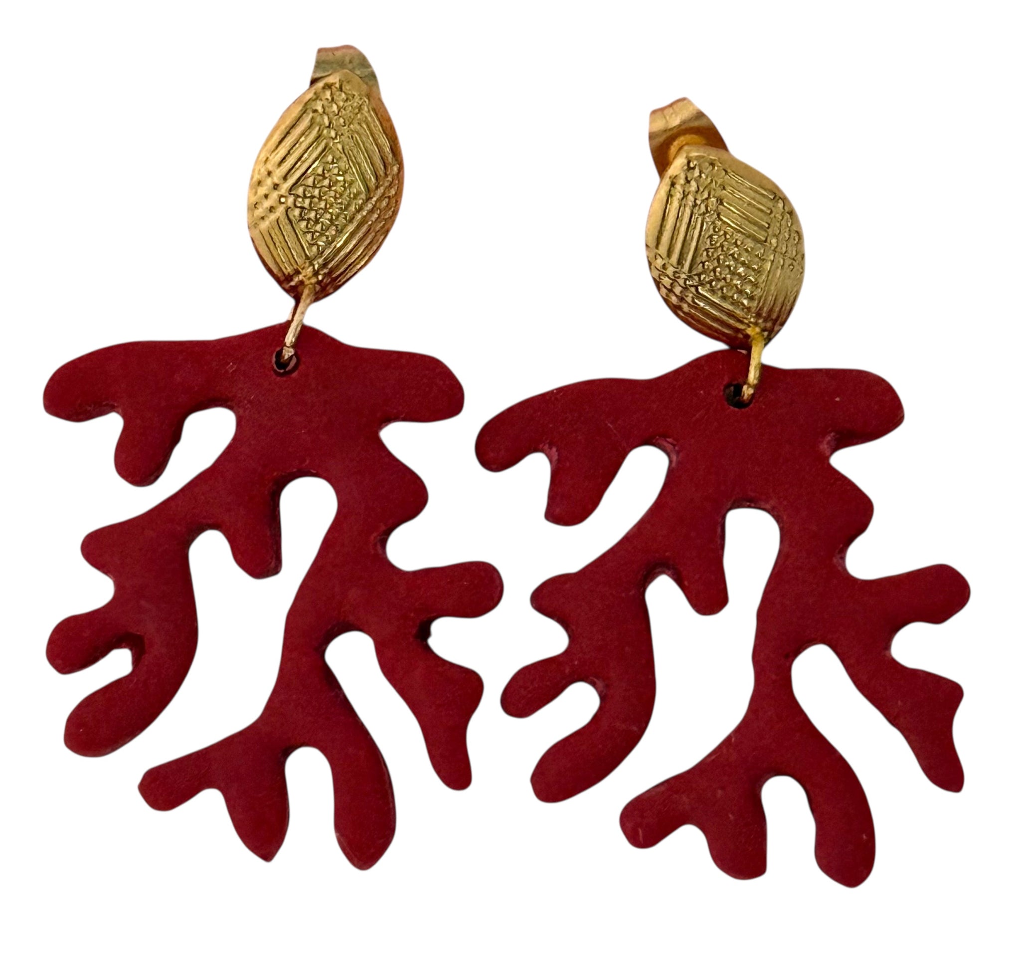 Add a statement to your style with these one-of-a-kind red polymer clay earrings, artistically shaped with a unique root-inspired design.
