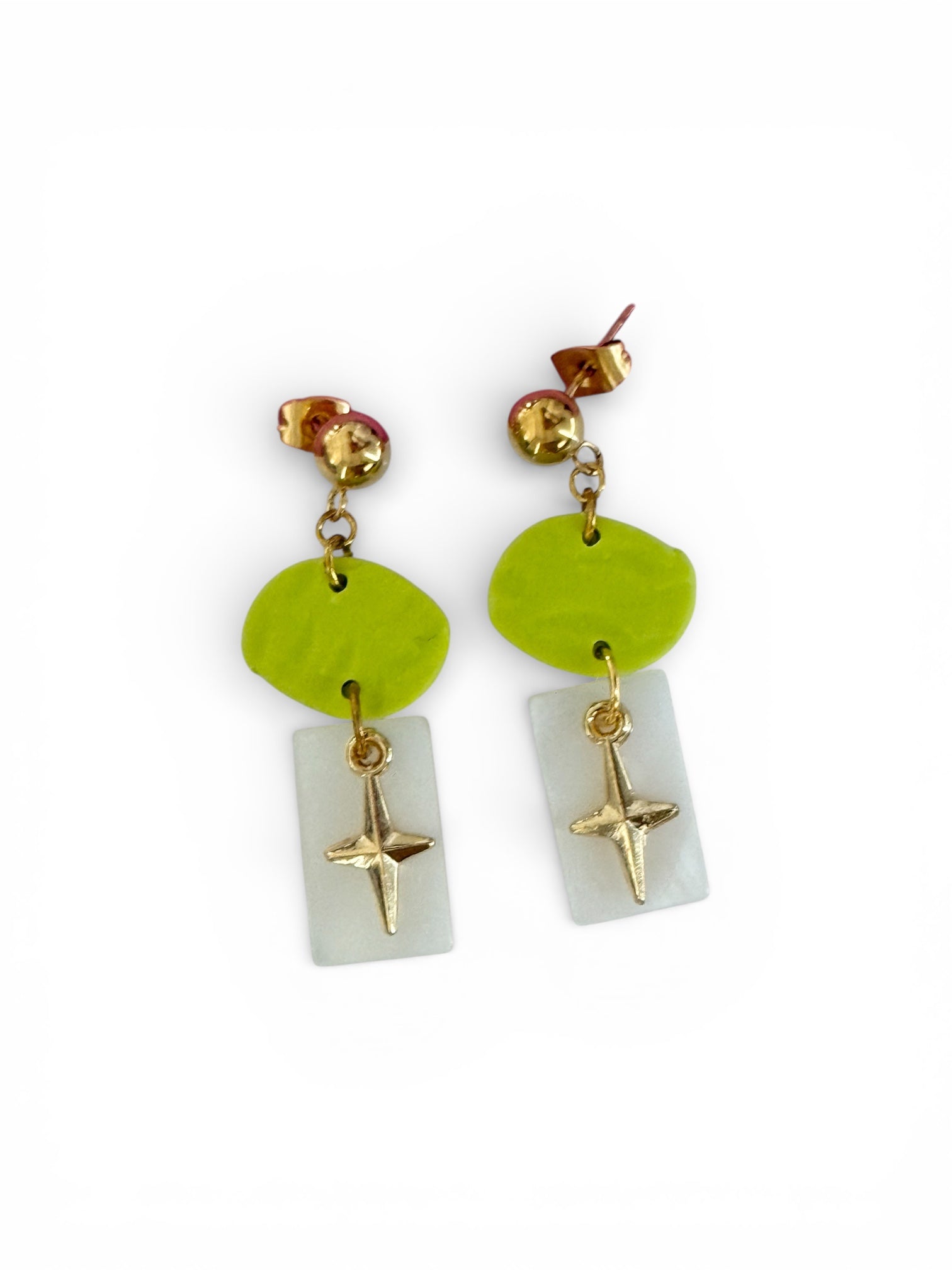 Handcrafted with modern elegance, the Lime Grace Cross Earrings feature textured lime-green polymer clay paired with a sleek white rectangular charm for a fresh, contemporary contrast. Finished with a refined stainless steel crucifix charm and stainless steel studs, this design blends faith-inspired symbolism with modern artistry.