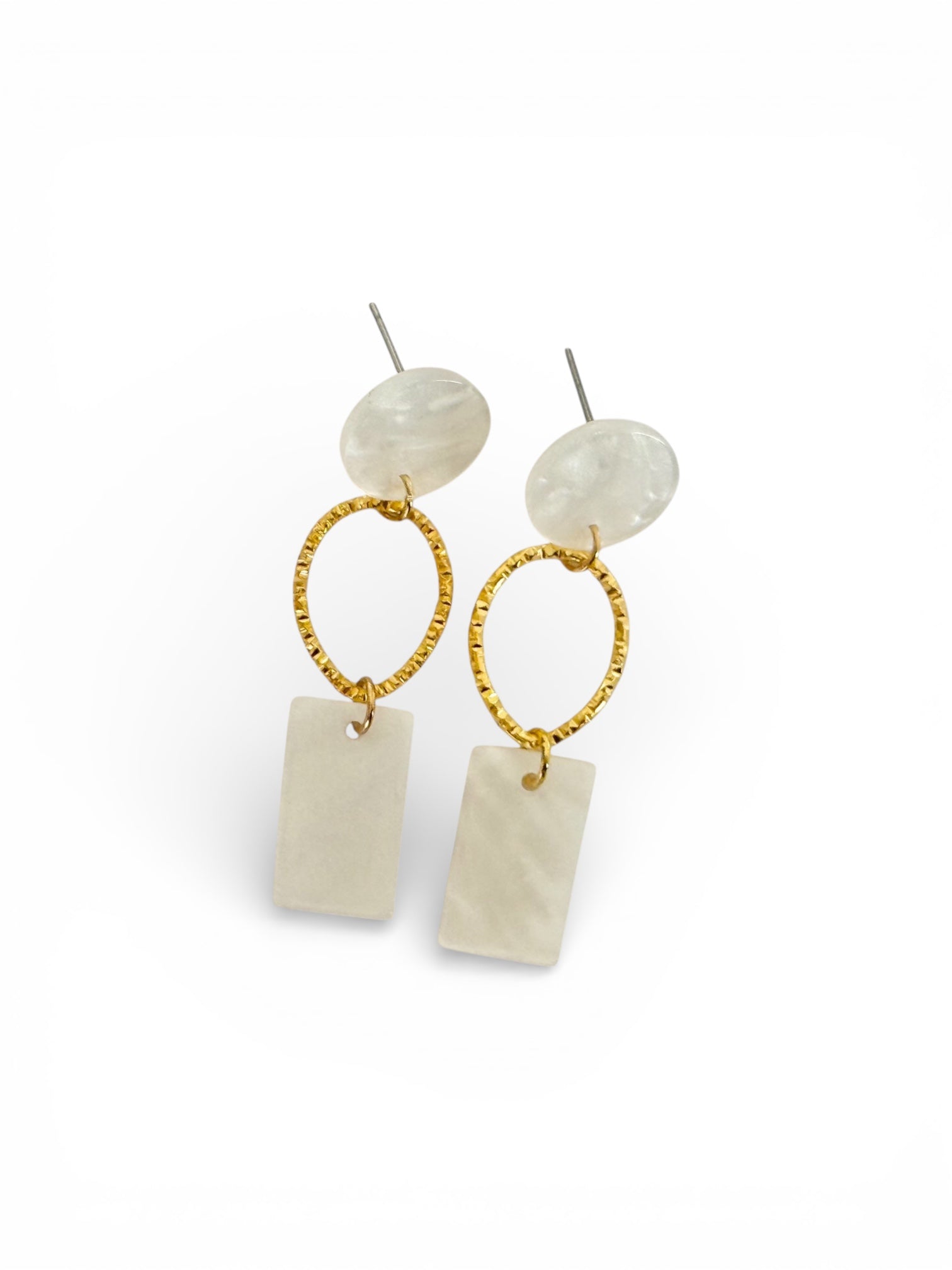Infuse modern artistry into your style with these handmade earrings, featuring stainless steel brass hoops paired with acrylic pendants and anchored by acrylic stainless steel studs.