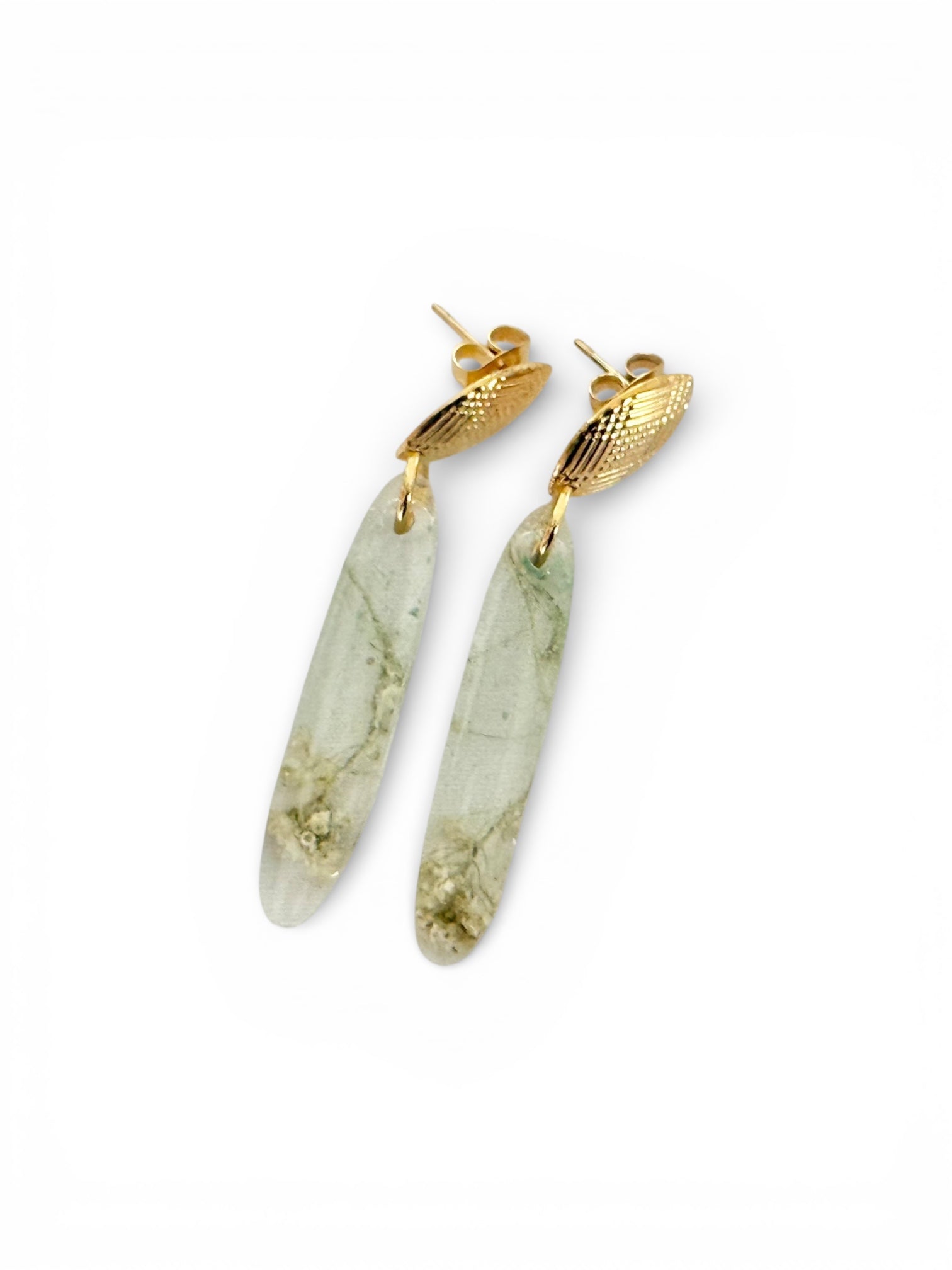 Both the flowers and fern leaves were patiently dried for 2–3 weeks, then sealed in clear epoxy resin to protect their story forever. Finished with a stainless steel studs, each pair is truly one of a kind, carrying nature, memory, and craftsmanship in every detail.