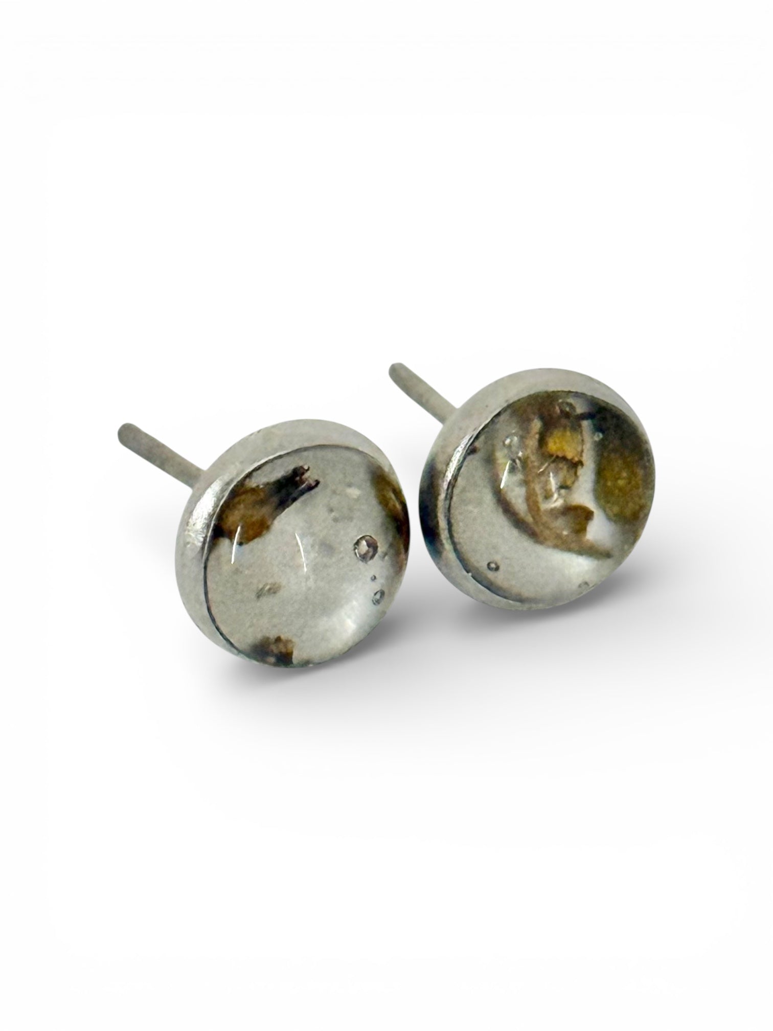 These delicate handmade stud earrings feature wildflowers personally handpicked from my garden, carefully dried for 2–3 weeks to preserve their natural colour and form. Each bloom is then sealed in clear epoxy resin, creating a smooth, glass-like finish that protects the flowers while showcasing their organic beauty. Finished with stainless steel studs for comfortable, hypoallergenic wear, these earrings are lightweight, timeless, and truly one of a kind.